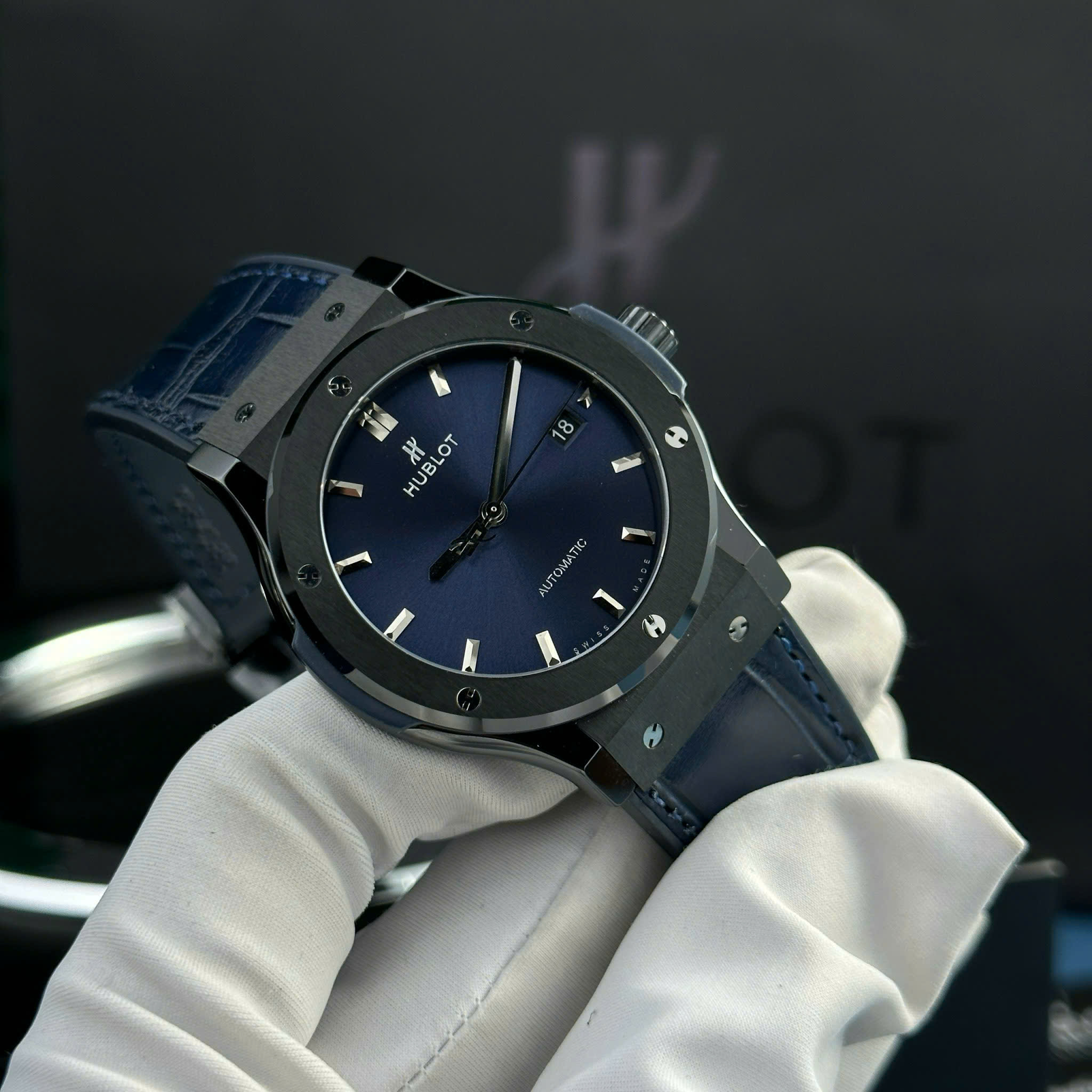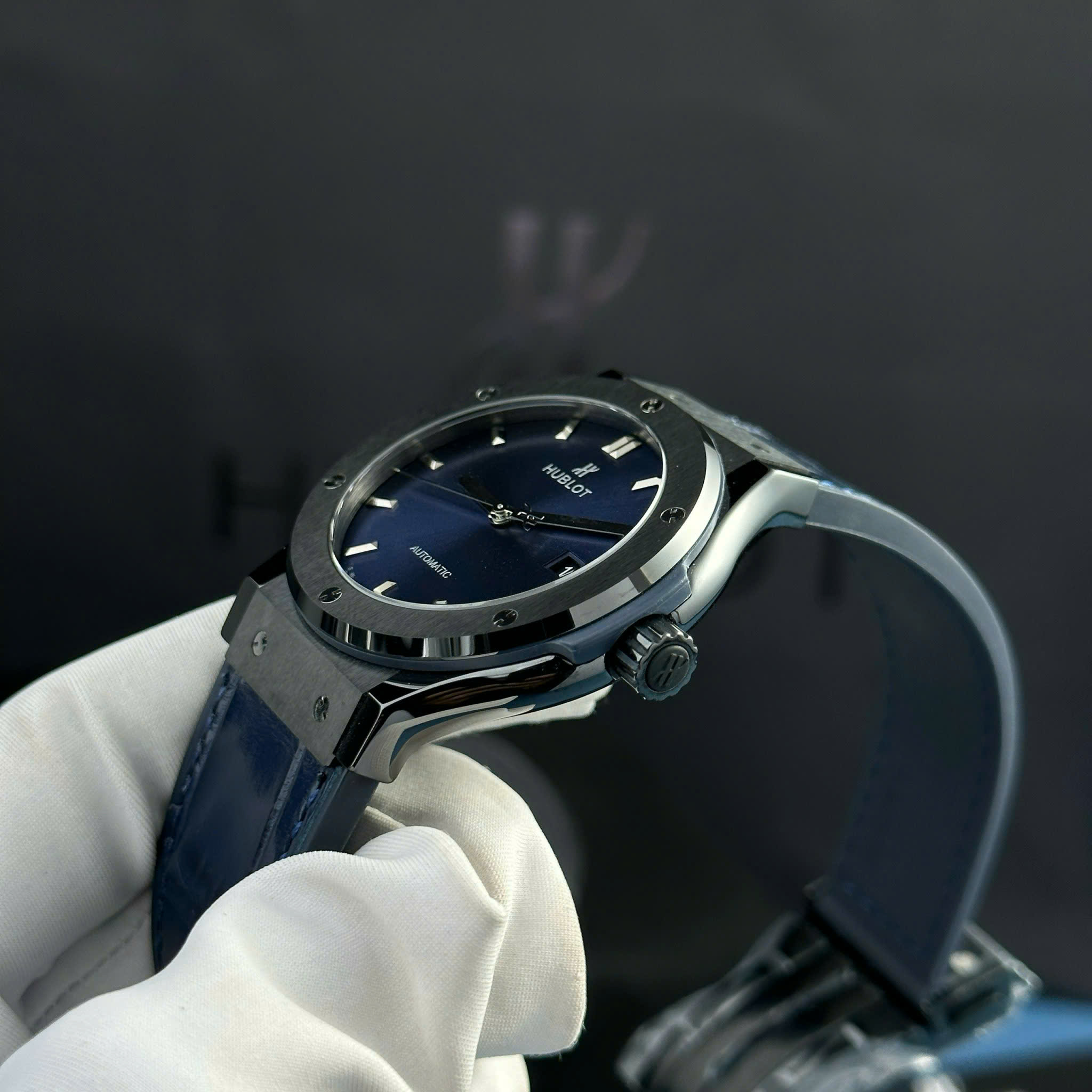 Đồng hồ nam Hublot Classic Fushion carbon Replica cao cấp Blue 45mm