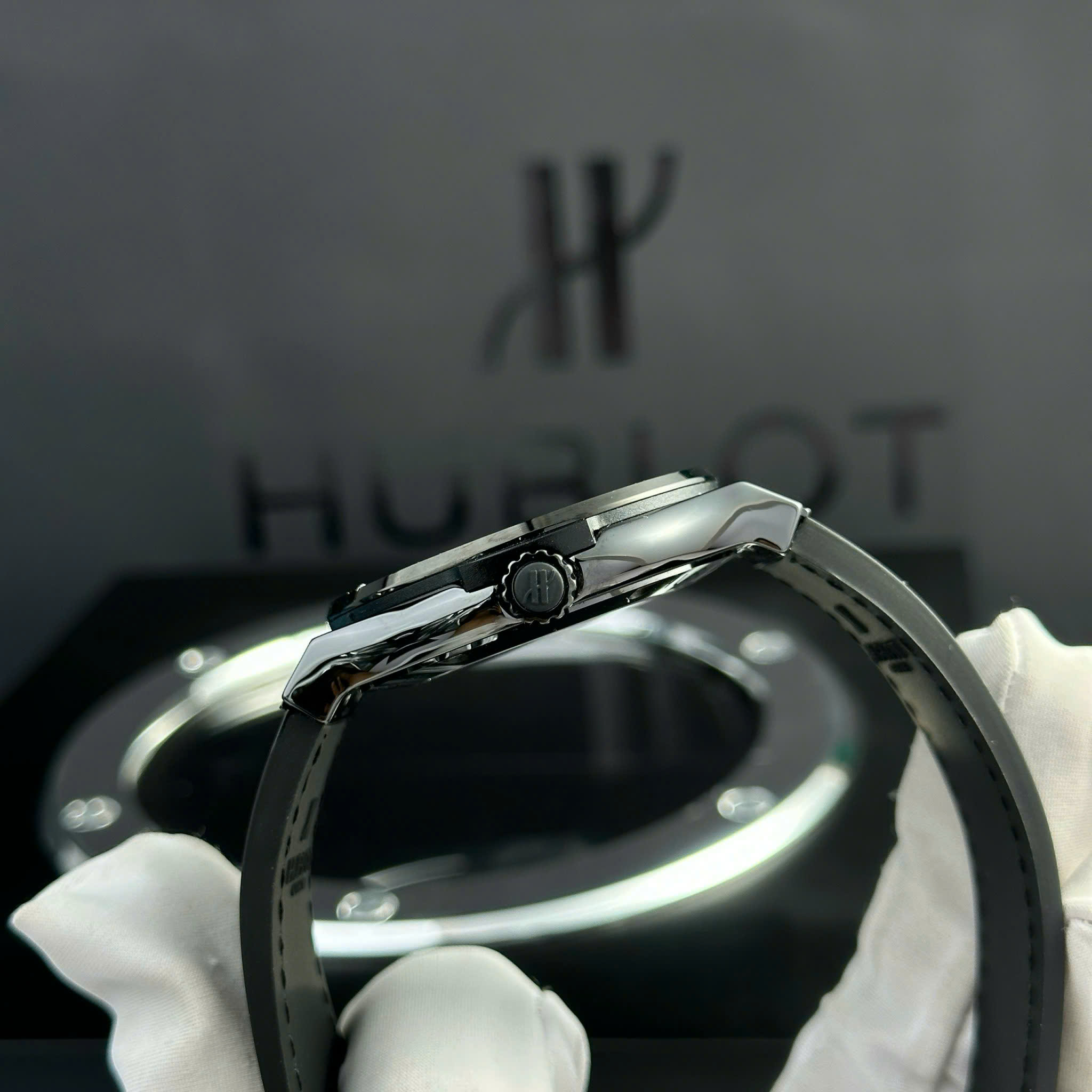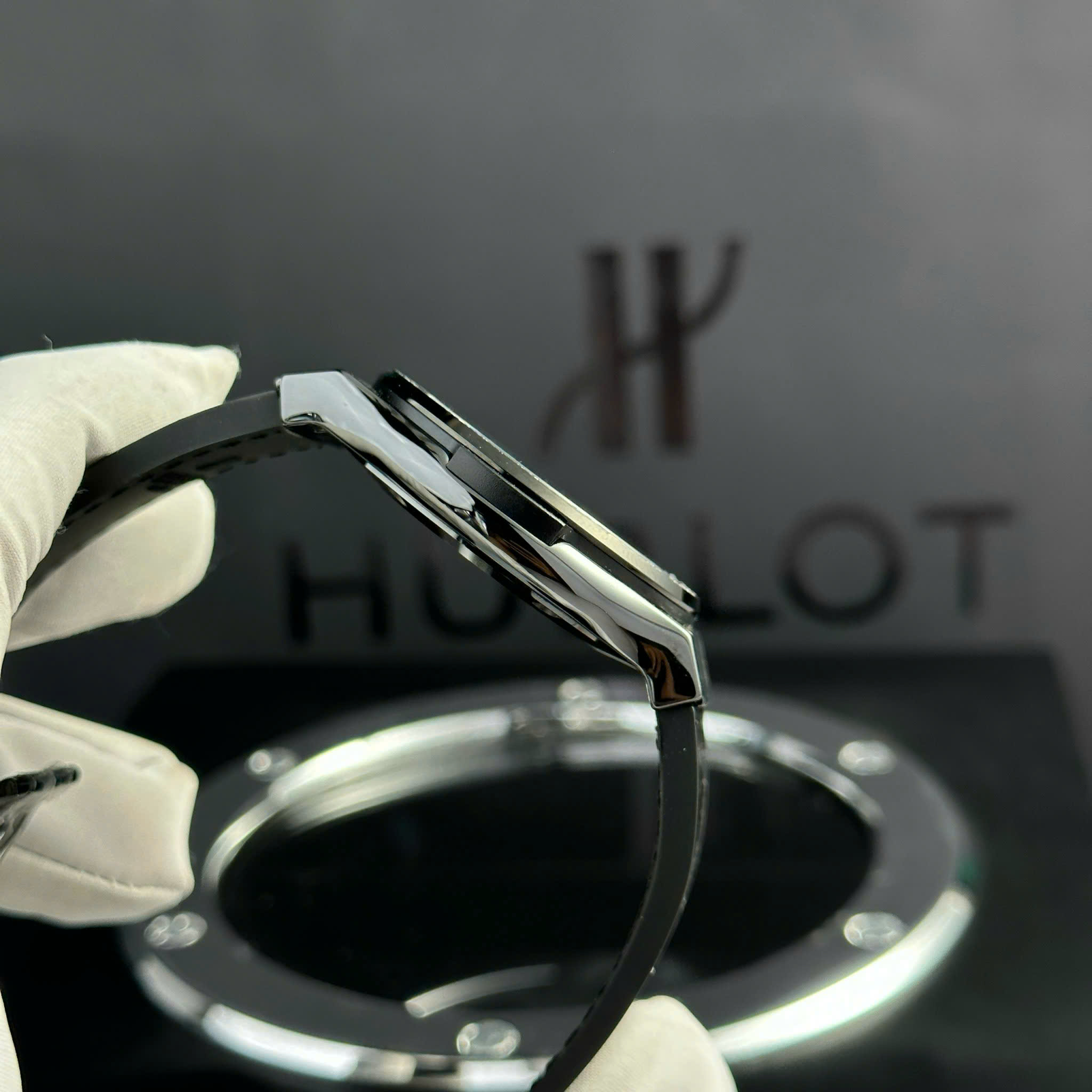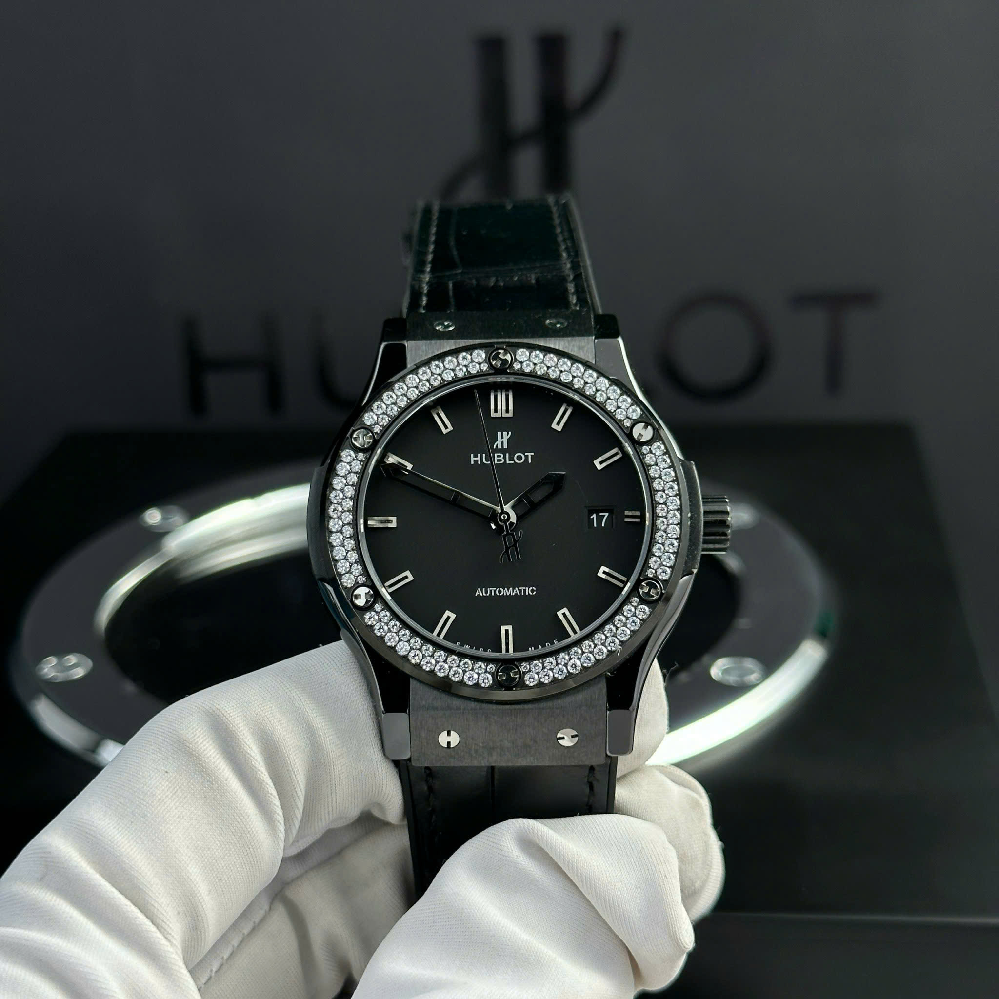 Đồng hồ nam Hublot Classic Fushion carbon Replica cao cấp Black niềng kim cương 45mm