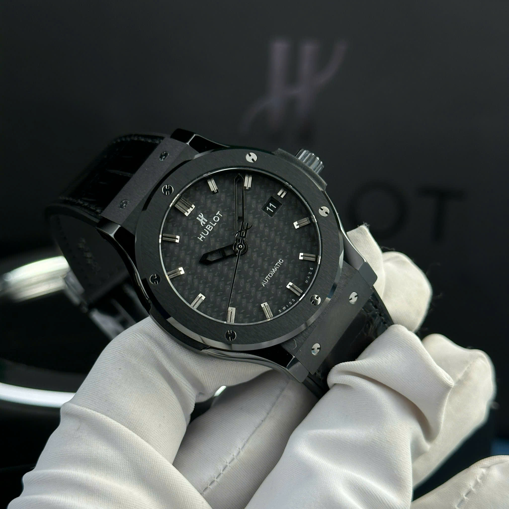 Đồng hồ nam Hublot Classic Fushion carbon Replica cao cấp Black 45mm