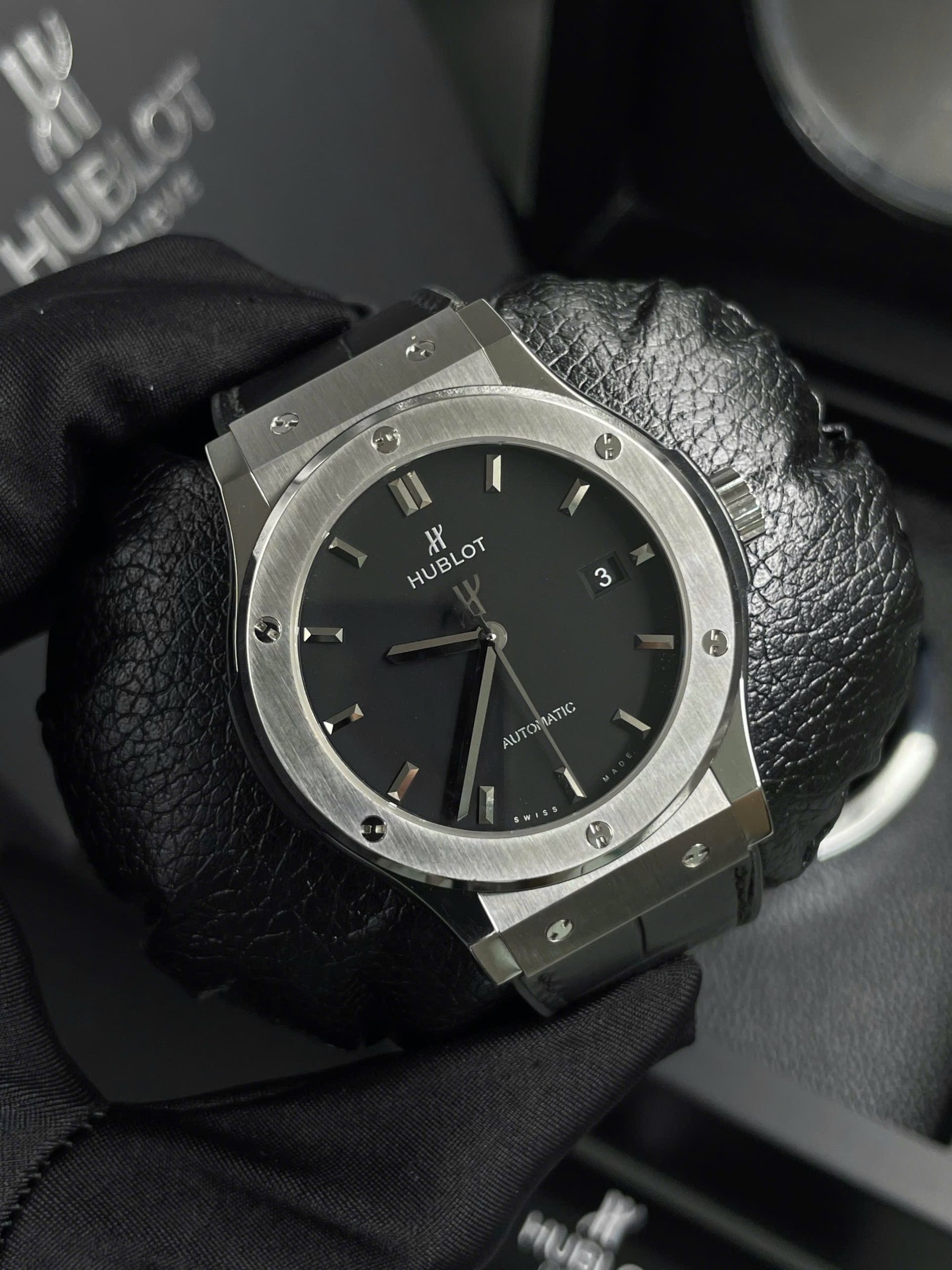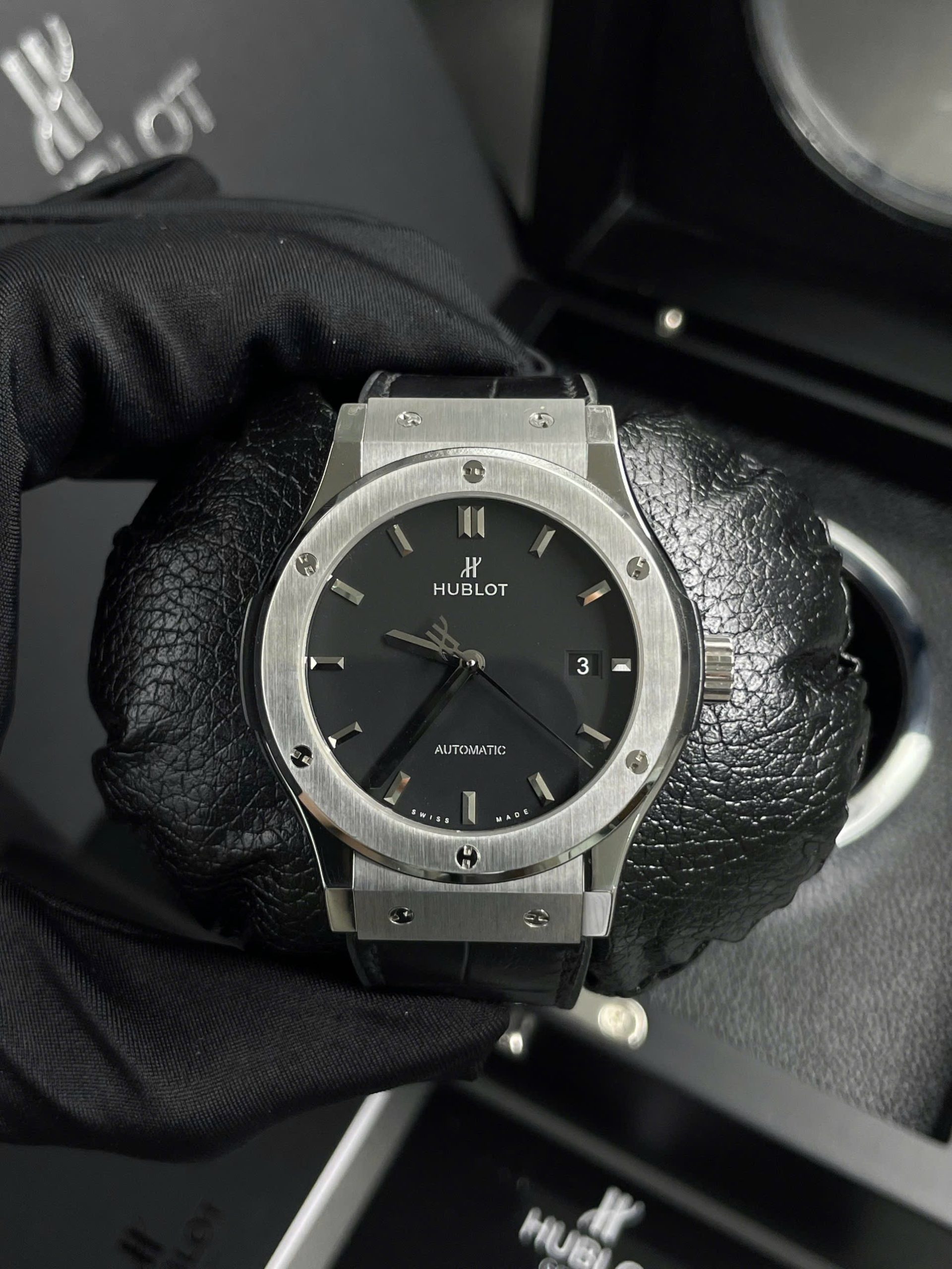 Đồng hồ nam Hublot Classic Fushion Replica cao cấp Mặt đen Niềng thép 42/38mm